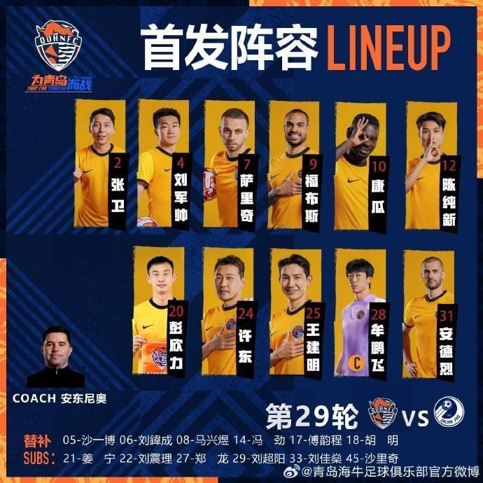 米乐体育-青岛海牛首发: